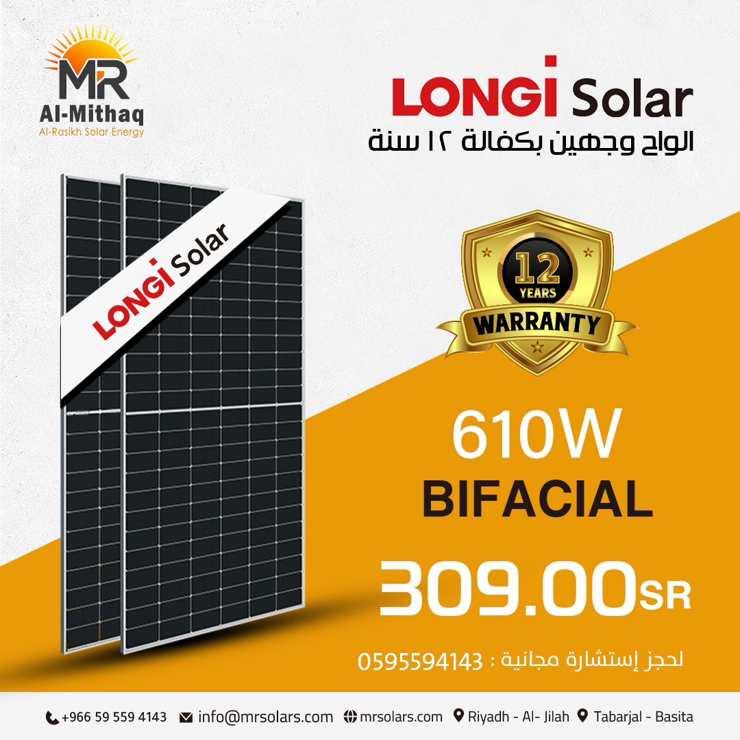 🔋 ألواح الطاقة الشمسية Longi Solar – بقدرة 610 واط ☀️